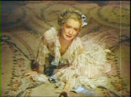 This is the scene being photographed at the top of this page.Despite the fact that all two-color systems used red and some variation on green, they were not capable of delivering a genuine red on the screen. Becky Sharp provided lots of opportunities to see brilliant reds in addition to the new blue.