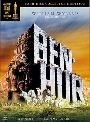 While it is absolutely necessary to distinguish the new version from the old, who came up with the color scheme that seems to bear no resemblance to anything associated with this well known movie? Printing the title graphic in a bas relief is a nice touch but the Curator is going to have to spend some time getting used to the goofy colors. (The chariot race on lush grass?) But this is nit-picking based on the Curator's personal sensibilities. Let's now look at the backs of these two packages.