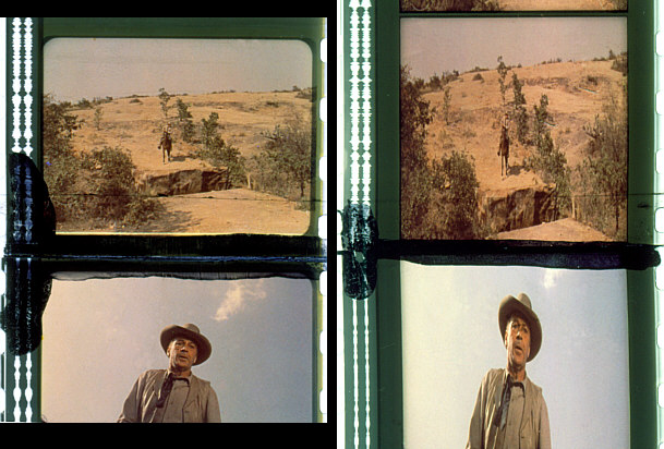 Vera Cruz - first feature made in Superscope - Images from flat and anamorphic trailers showing the same frames. A little bit of overdo on the blooping ink. Obviously the prints are dye transfer Technicolor, something considered by the Tushinsky brothers to be an integral part of Superscope films in color, as it was with VistaVision.