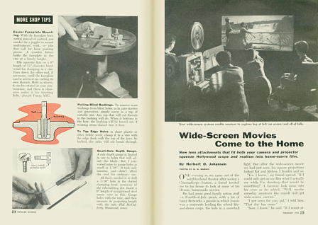 We'll begin this section with a POPULAR SCIENCE article from February, 1955 on Bell & Howell's FilmoRama and Delft's Vistascope lenses. (BELOW) Other small format anamorphic lenses were also offered for amateur and semiprofessional use.