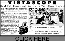 VISTASCOPE magazine ads circa 1955. The little prism anamorphic lenses were offered by many of the countless camera stores in New York. Here we reproduce two different ads for the lens.