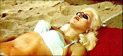One of the most eye catching 70mm film frames in the museum's collection was a mystery for quite a while. Thanks to film historian Dan Sherlock, we now know that the young lady in the picture is none other than Diana Dors, 1950's British Bimbo DeLuxe, in the film Scent of Mystery also shown under the title Holiday