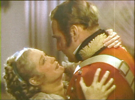 This is the scene being photographed at the top of this page.Despite the fact that all two-color systems used red and some variation on green, they were not capable of delivering a genuine red on the screen. Becky Sharp provided lots of opportunities to see brilliant reds in addition to the new blue.