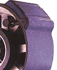 Three black and white films are transported through the prism assembly. The light coming through the camera lens, (A), travels to the double prism beam splitter, (B),and a portion of the light passes straight to the film behind the green filter, (C). The balance of the light is reflected by the gold flecked surface (later changed to silver) and passes through a magenta filter, (D), that removes the green light and transmits only red and blue. The red and blue films, (F), are bipacked emulsion-to-emulsion. Since this light must pass through the base of the blue film, the images recorded on the blue and red films are slightly less sharp than the green element, but the difference is minimal. The blue film had a red orange dye coating on top of its emulsion which acted as a filter to prevent any blue light from reaching the red element film, which was sensitive to both red and blue light. During development the filtering dyes were washed from the black and white negative. Note that the red and green films were panchromatic, (sensitive to all colors in the visible spectrum), while the blue film was orthochromatic, (sensitive to blue, green and violet light, but not to red).