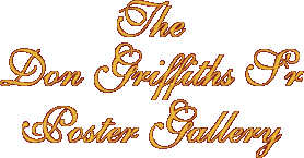 Poster reproductions are produced in a moderately high resolution so that they may be printed in sizes up to 24" high with acceptable quality. The posters will be changed every few weeks. Fire up your color ink jet printer and decorate your home just like the WideScreen Museum. Just click on any poster to download it.Unless otherwise noted, all posters are original release versions, not re-release or video. Earlier featured posters are listed at the bottom of the page. The curator of the museum is grateful to Mr. Don Griffiths for providing a variety of items from the collection of his late father. This section of the museum is dedicated to his memory.