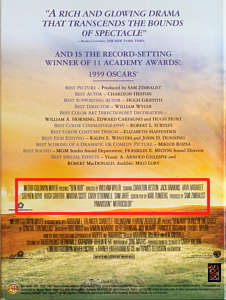 While it is absolutely necessary to distinguish the new version from the old, who came up with the color scheme that seems to bear no resemblance to anything associated with this well known movie? Printing the title graphic in a bas relief is a nice touch but the Curator is going to have to spend some time getting used to the goofy colors. (The chariot race on lush grass?) But this is nit-picking based on the Curator's personal sensibilities. Let's now look at the backs of these two packages.