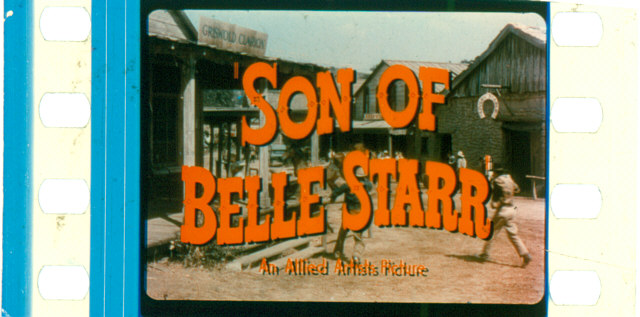 Son of Belle Star, 1953, in Cinecolor. Despite the availability of Eastmancolor and Ansco Color monopack color films since 1949, most Cinecolor product continued to be 2-color prints made from bipack negatives.