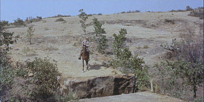 Same frame captured from DVD. Superscope's 2:1 aspect ratio is accurate on both images.While the shape of the two frames is correct, the DVD shows that the transfer was made incorrectly, using only the standard Academy width from the original negative rather than the full aperture width used as the source for the Superscope print. Since the incorrect width was used, it was necessary to crop the image height to maintain the 2:1 aspect ratio. Just because the shape is correct, you're not guaranteed that the content is correct.
