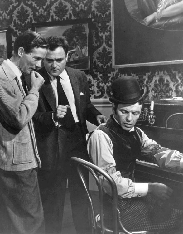 Considering the length and simplicity of Frank Sinatra's cameo appearance in the film, it's pretty hard to figure out what on earth Mike Todd can be telling director Michael Anderson. Back To Gallery Menu