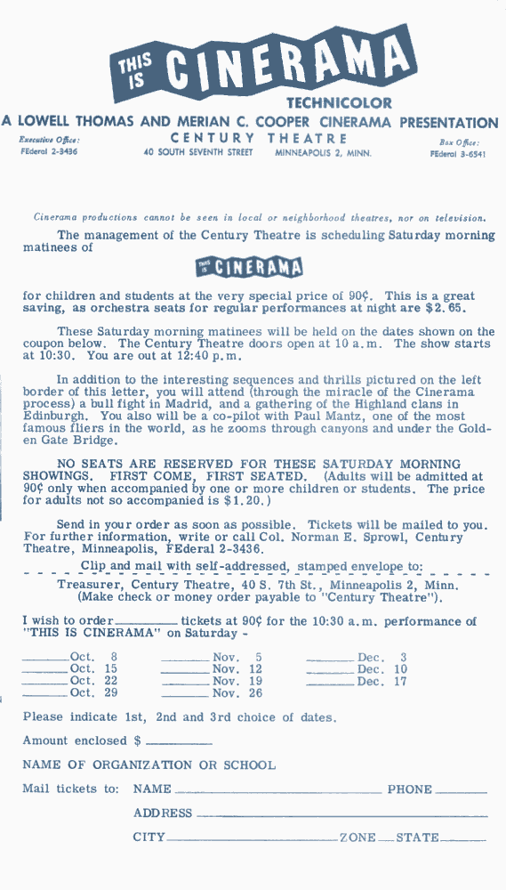 Additional Matinee Performances Scheduled! This flyer announces the addition of Saturday morning matinees targeted at the youthful audience.