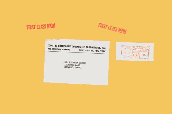 At the time that I initially presented this material I did not have copies of the two title pages, the last page, and a couple of the illustrations, and I had no idea who had written it. Fortunately for all of us, Richard Babish, the author of the report, found it on the web and provided us with a full copy of the material, including the envelope that his copy had arrived in. Dick had left the employ of Cinemiracle following the openings in New York and Hollywood. The Russians had launched something called "Sputnik" and our own rocket program was in trouble. Dick felt that he needed to put his talents to work on something more important than movies. This report was written in an effort to provide his successors with a fairly comprehensive compilation of the findings he'd made during his time with both Cinerama and Cinemiracle.