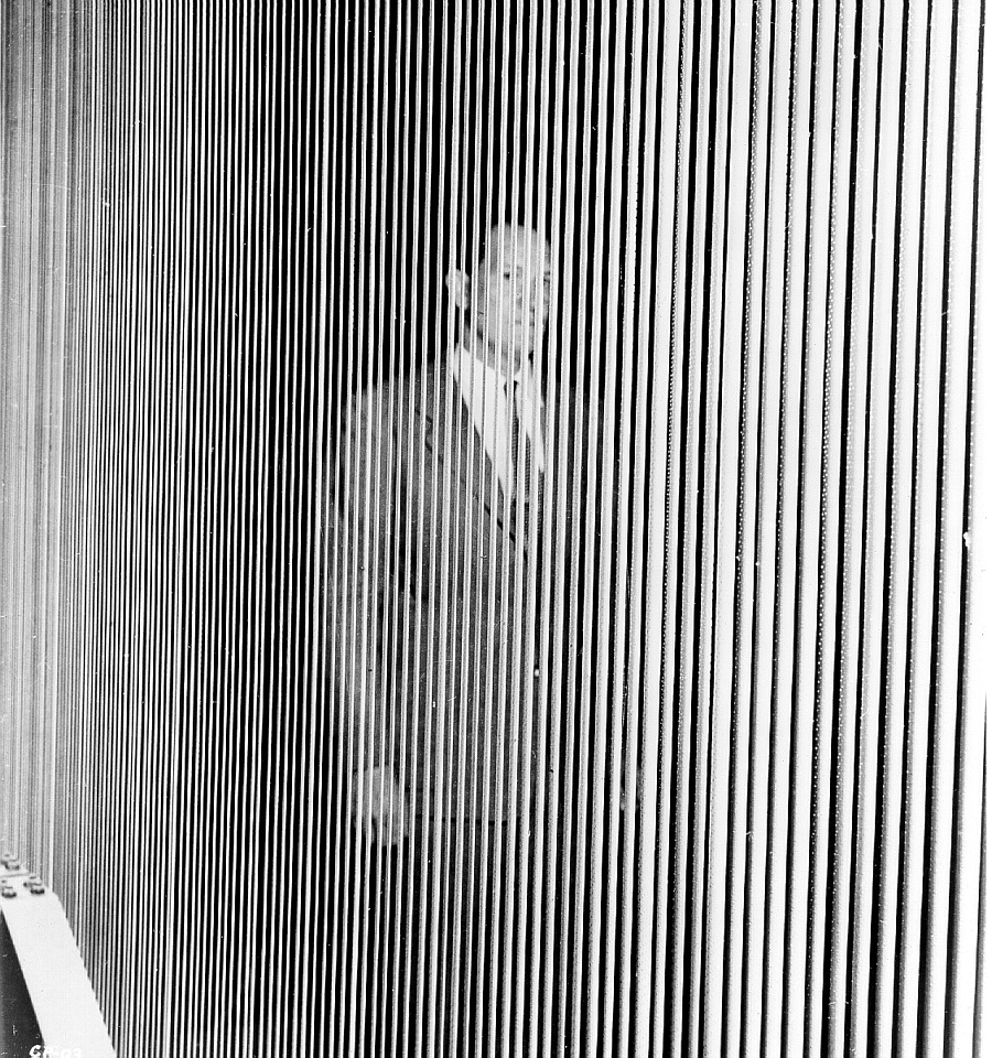 tape arranged like the louvres of a gigantic Venetian blind. The screen