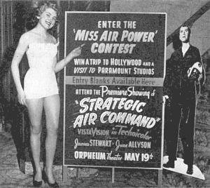 Paramount placed a six page ad in The Hollywood Reporter and other trade papers advertising the world premiere of Strategic Air Command in horizontal VistaVision, it included a two page spread on the film and its presentation in the Stanley-Warner Beverly Hills Theatre. Below is the front page of the promo.